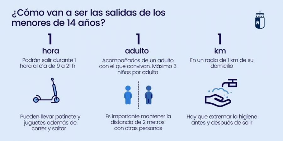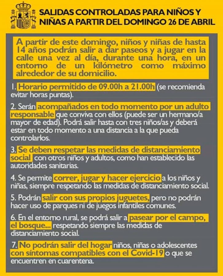 ‼️Los menores de 14 años pueden salir a partir de este domingo, 26 de abril, entre las 9:00 y las 21:00 horas, para pasear, jugar o hacer ejercicio durante una hora, siempre acompañados de un adulto y a una distancia de hasta un kilómetro desde sus domicilios.