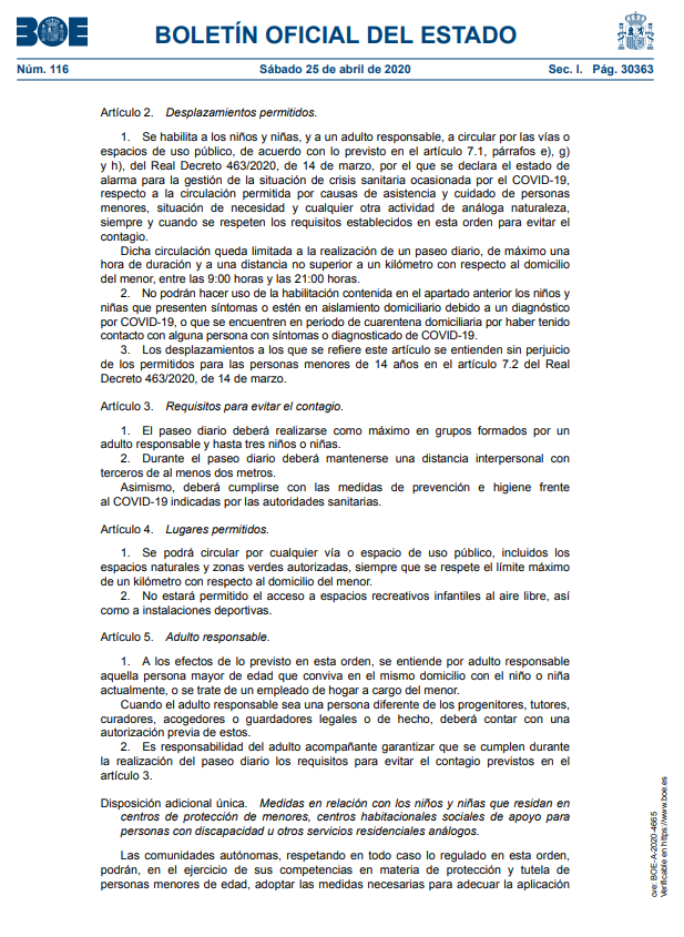 ✅ OS DEJAMOS TAMBIÉN EL ENLACE AL BOE QUE RECOGE LAS CONDICIONES EN LAS QUE DEBEN DESARROLLARSE LOS DESPLAZAMIENTOS POR PARTE DE LA POBLACIÓN INFANTIL DURANTE LA SITUACIÓN DE CRISIS SANITARIA ORIGINADA POR EL COVID-19 : ✅