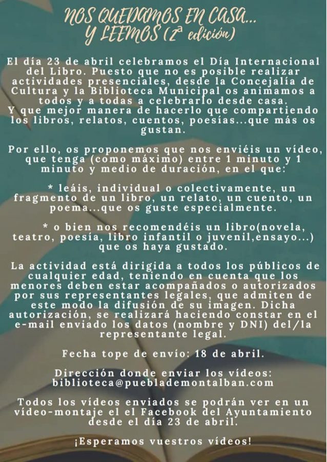 Desde la Biblioteca Municipal y la concejalía de Cultura, queremos seguir celebrando un día tan importante como el Día del Libro.
