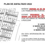 Mañana jueves 27 de Enero, se iniciarán los primeros trabajos del Plan de Asfaltado 2022 ESTARÁ PROHIBIDO EL ESTACIONAMIENTO EN…
