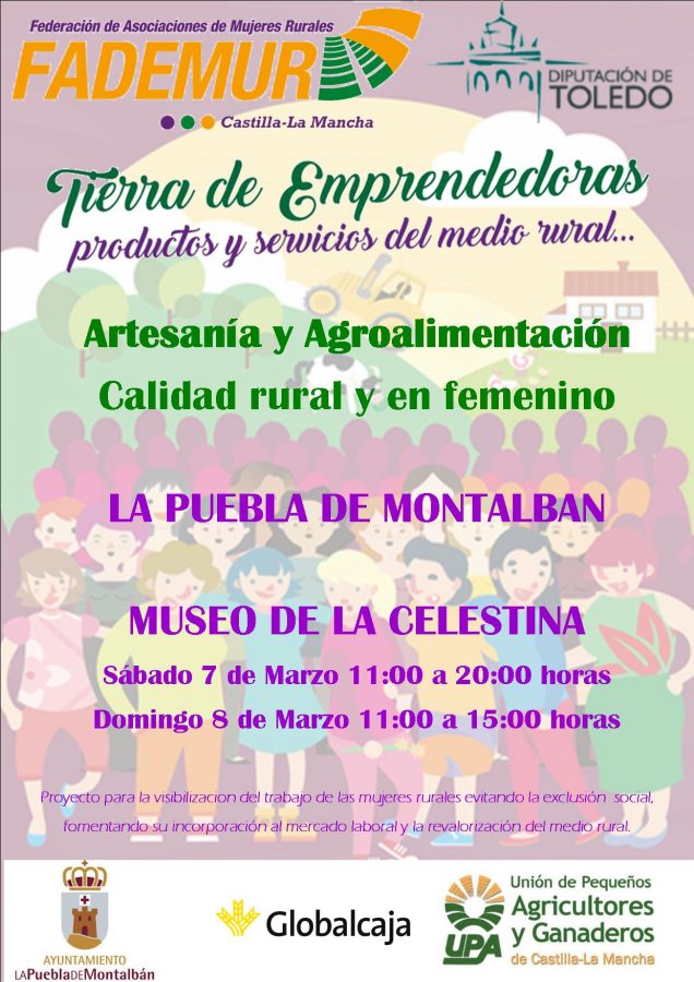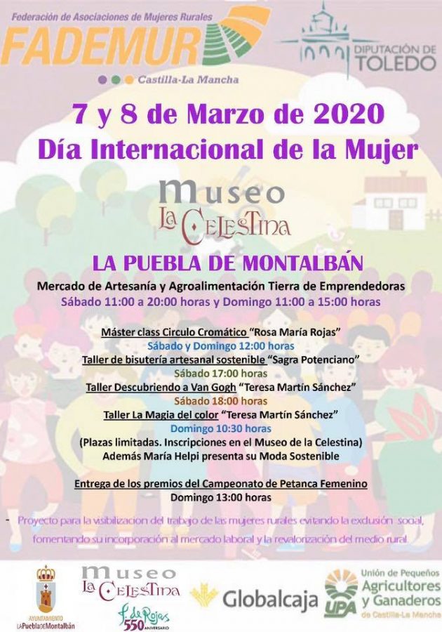 – Sábado 7 y Domingo 8 de Marzo de 11:00h a 20:00h: en el Museo de La Celestina (El domingo hasta las 15:00h): Talleres de Artesanía en colaboración con FADEMUR «Federación de Asociación de Mujeres Rurales»