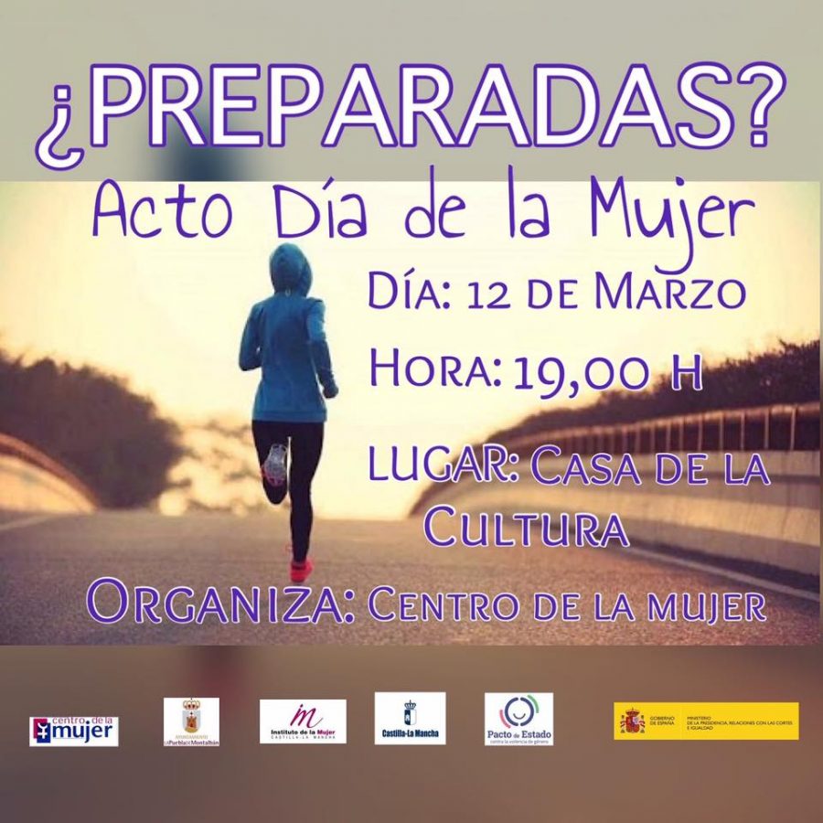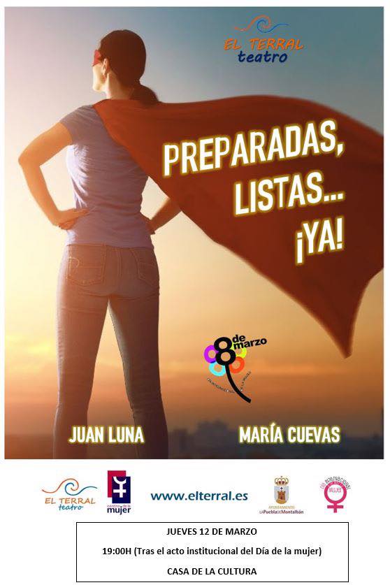 – Acto Institucional 8 M: ”¿PREPARADAS?”. Tendrá lugar el día 12 de marzo a las 19,00 h. En dicho acto tendrá lugar la REPRESENTACIÓN TEATRAL: “PREPARADAS, LISTAS……. ¡YA!”.