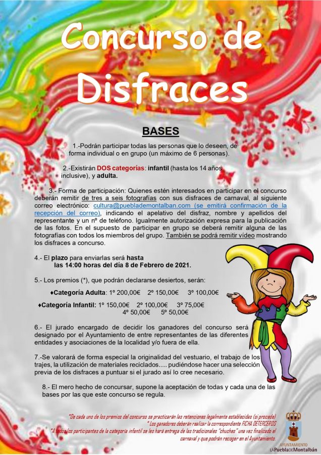 Desde el Ayuntamiento, hemos querido mantener viva la llama del carnaval en nuestro pueblo y, aunque será de manera online, hemos querido mantener estos dos Concursos de Carnaval: