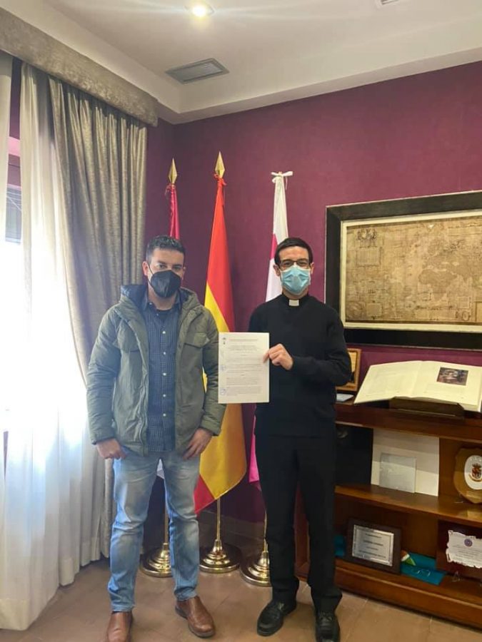 Hoy se ha formalizado un compromiso adquirido entre el Equipo de Gobierno y el anterior párroco, D. Jesús López, Sejo, a finales del año pasado. Esta mañana se ha firmado el convenio de colaboración entre el Ayuntamiento y la Parroquia.Mediante este convenio el Ayuntamiento aporta del presupuesto municipal de este año 10.000€ para llevar a efecto la realización de cuantas actividades sean necesarias para la rehabilitación,conservación y acondicionamiento de los edificios anteriormente reseñados.