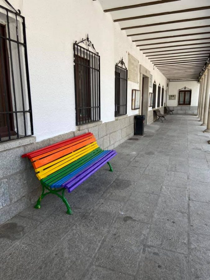 Con motivo del Día Internacional por los derechos LGTBI el Equipo de Gobierno ha querido mostrar el compromiso por las personas y la igualdad y también apoyar y visibilizar al colectivo LGTBI. Para ello se ha instalado este banco que se ha pintado con la bandera arco iris que es el símbolo de este movimiento. 🌈🌈