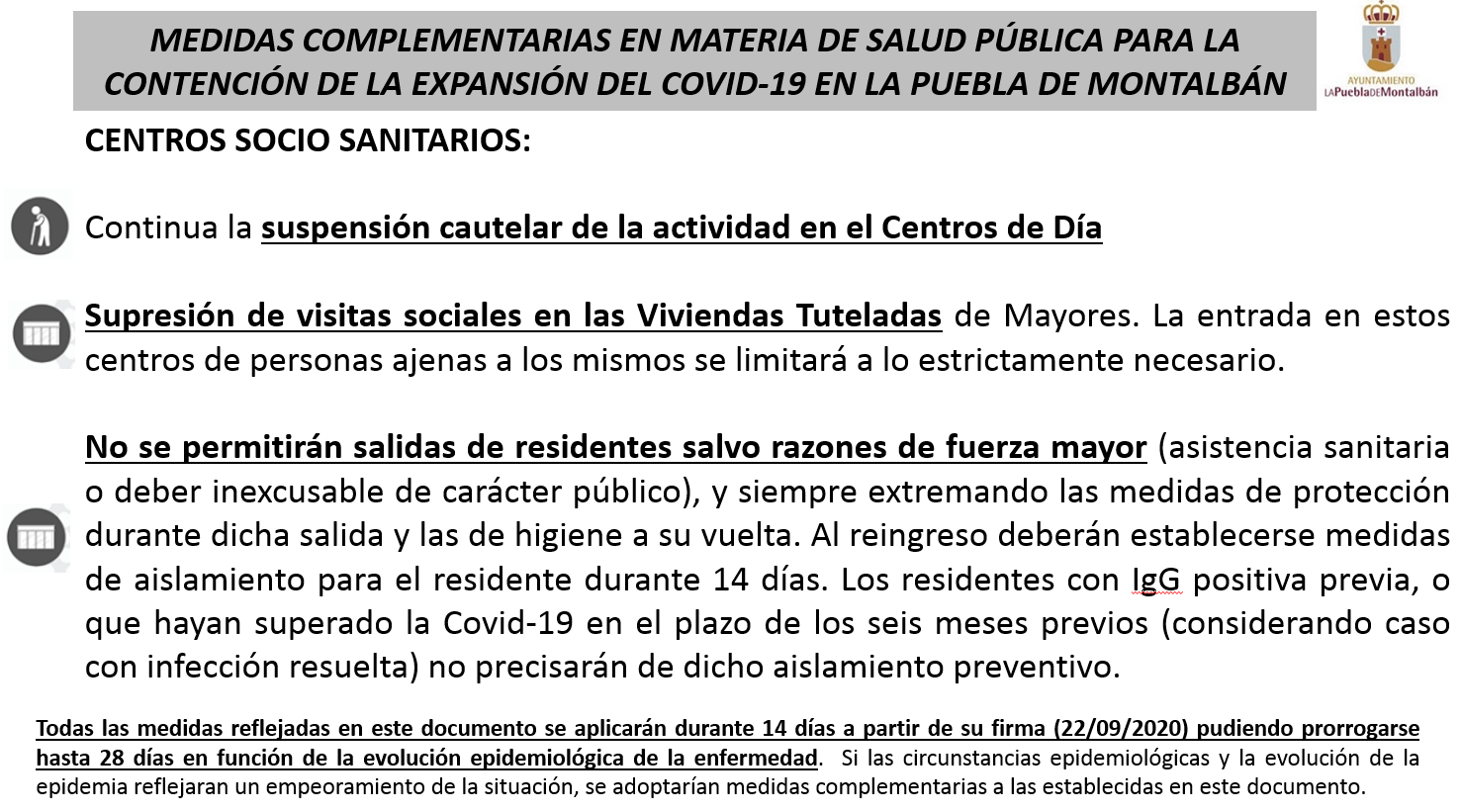 🔈 RESUMEN MEDIDAS COMPLEMENTARIAS EN MATERIA DE SALUD PÚBLICA PARA LA CONTENCIÓN DE LA EXPANSIÓN DEL COVID-19 EN LA PUEBLA DE MONTALBÁN