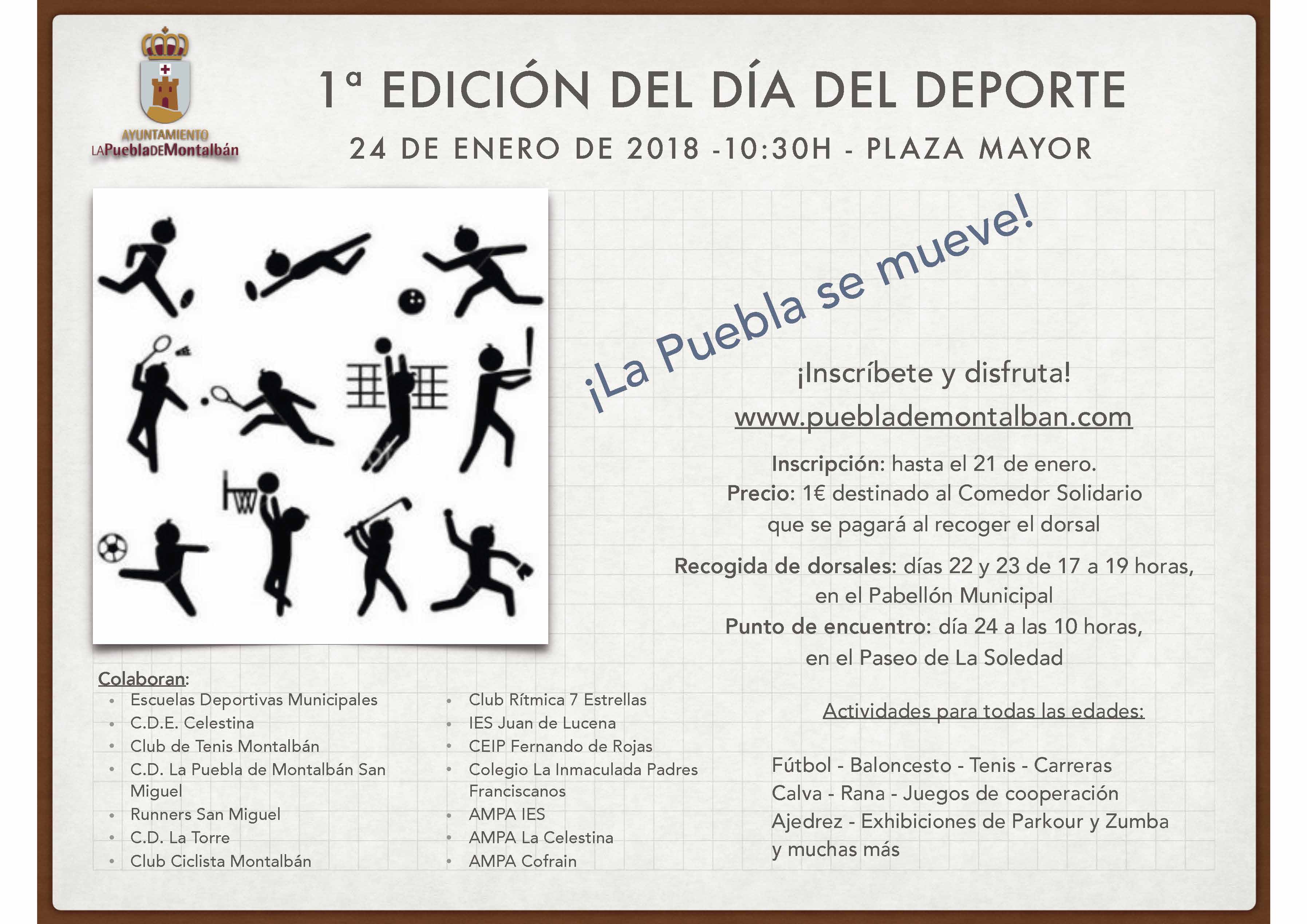 EL DÍA DEL DEPORTE PUEBLANO tiene como intención promocionar el acervo cultural y deportivo de nuestra localidad, sacando el deporte a la calle para acercarlo a las gentes, adaptándolo a las circunstancias físicas y materiales del evento. Igualmente pretende impulsar fines solidarios.