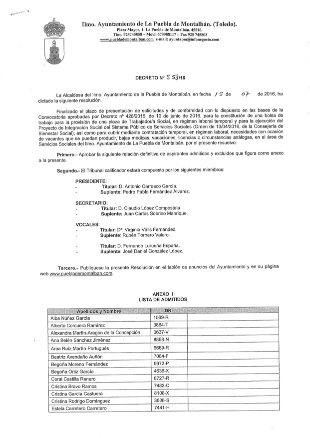 Publicación de la listado definitivo de aspirantes admitidos al PRIS