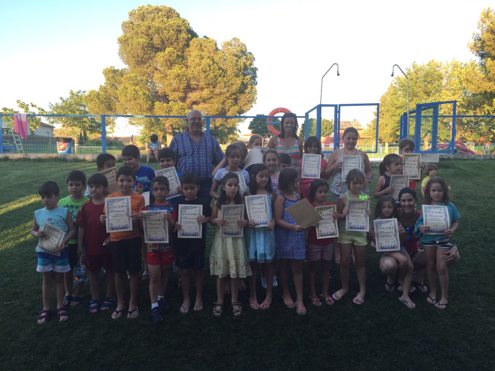 Unas imágenes de la entrega de diplomas de los cursos de natación a los nuevos pequeños nadadores
