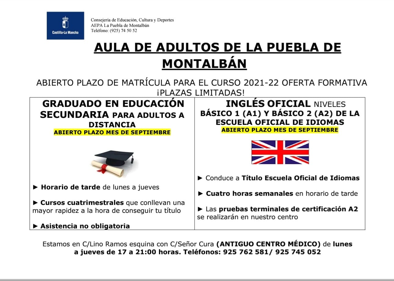 Vuelve el Aula de Adultos. Aprovechad para mejorar vuestra formación y por tanto, el acceso a trabajos que requieran titulación.…