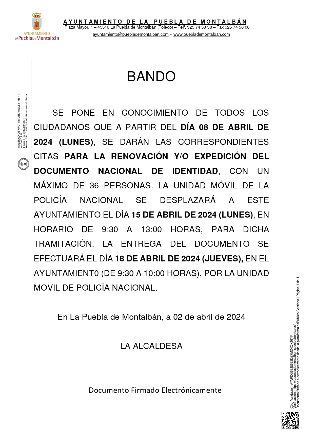 Se informa a la población que a partir del día 8 de abril de 2024 se darán las correspondientes citas…
