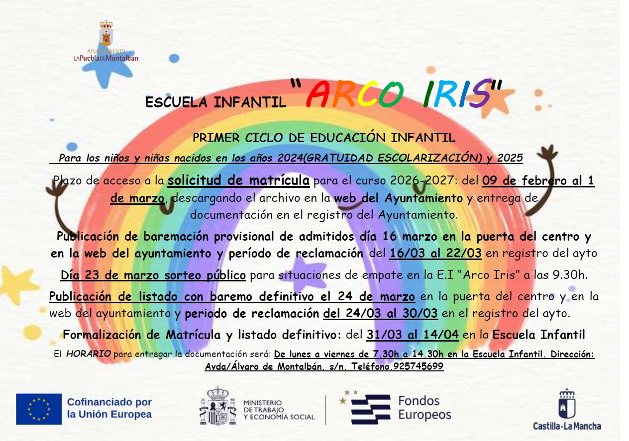 ESCUELA INFANTIL “ARCO IRIS”PRIMER CICLO DE EDUCACIÓN INFANTIL 🏫 Para los niños y niñas nacidos en los años 2024(GRATUIDAD ESCOLARIZACIÓN)…