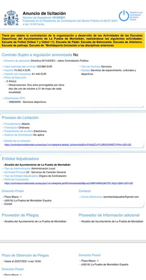 PLAZO DE PRESENTACIÓN DE OFERTAS: Hasta el 23/07 a las 19:00h mediante la plataforma electrónica de Contratación del Sector Público.