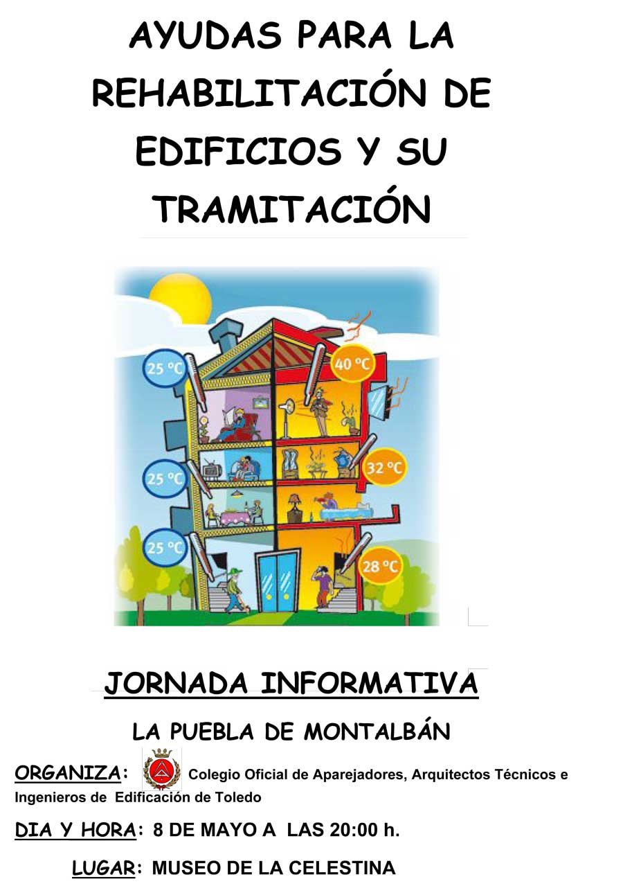 JORNADA INFORMATIVA LA PUEBLA DE MONTALBÁN ORGANIZA: Colegio Oficial de Aparejadores, Arquitectos Técnicos e Ingenieros de Edificación de Toledo DIA Y HORA: 8 DE MAYO A LAS 20:00 h. LUGAR: MUSEO DE LA CELESTINA Haz clic para compartir en Facebook (Se abre en una ventana nueva)Haz clic para compartir en Twitter (Se abre en una ventana nueva) Relacionado Navegación de entradas Anuncio contrato gestión piscina 2015 Oferta de empleo: Plaza de Tesorero del Ayto de la Puebla de Montalbán