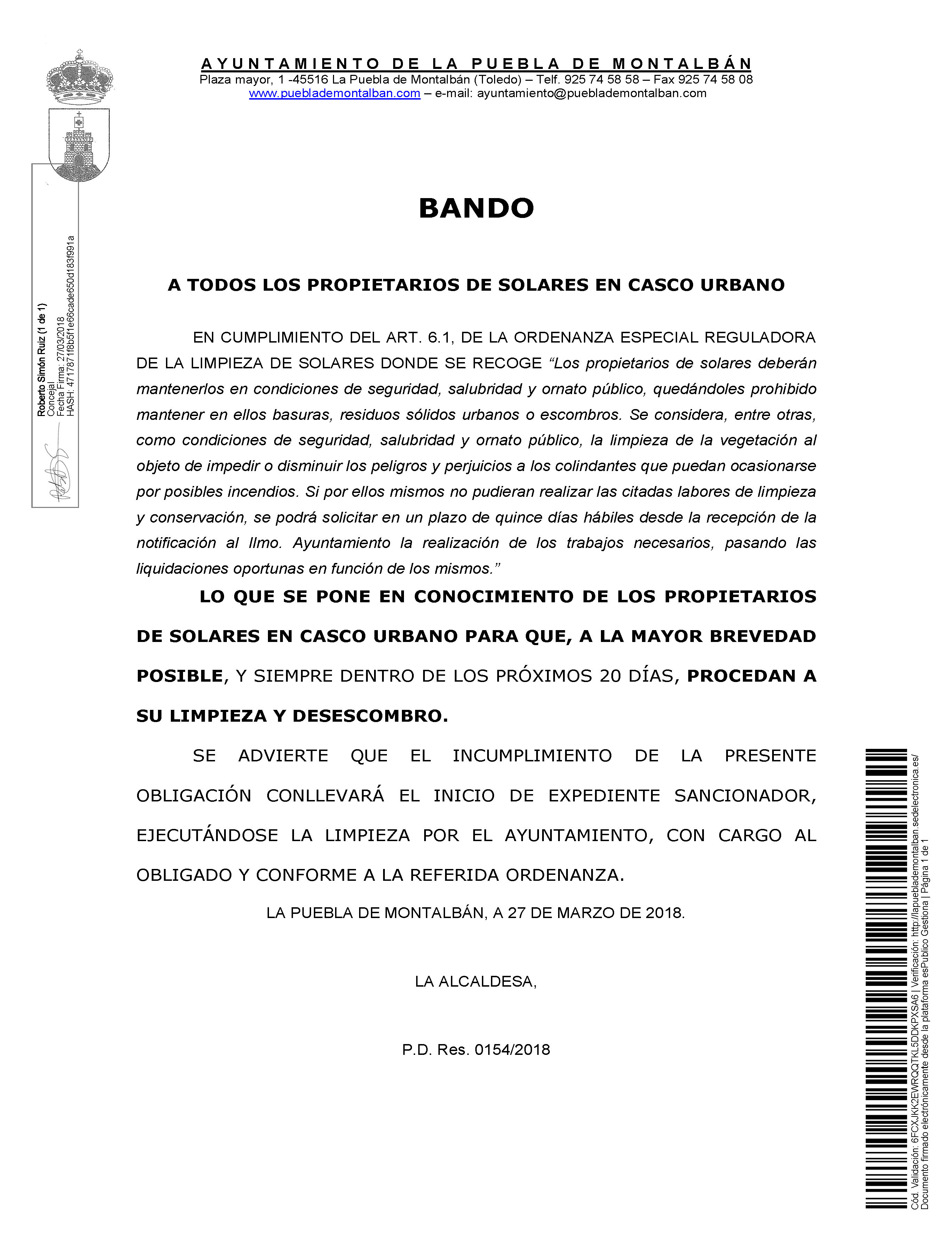 Haz clic para compartir en Facebook (Se abre en una ventana nueva)Haz clic para compartir en Twitter (Se abre en una ventana nueva) Relacionado Navegación de entradas Bando sobre limpieza de solares Bando sobre el cierre temporal del Punto Limpio