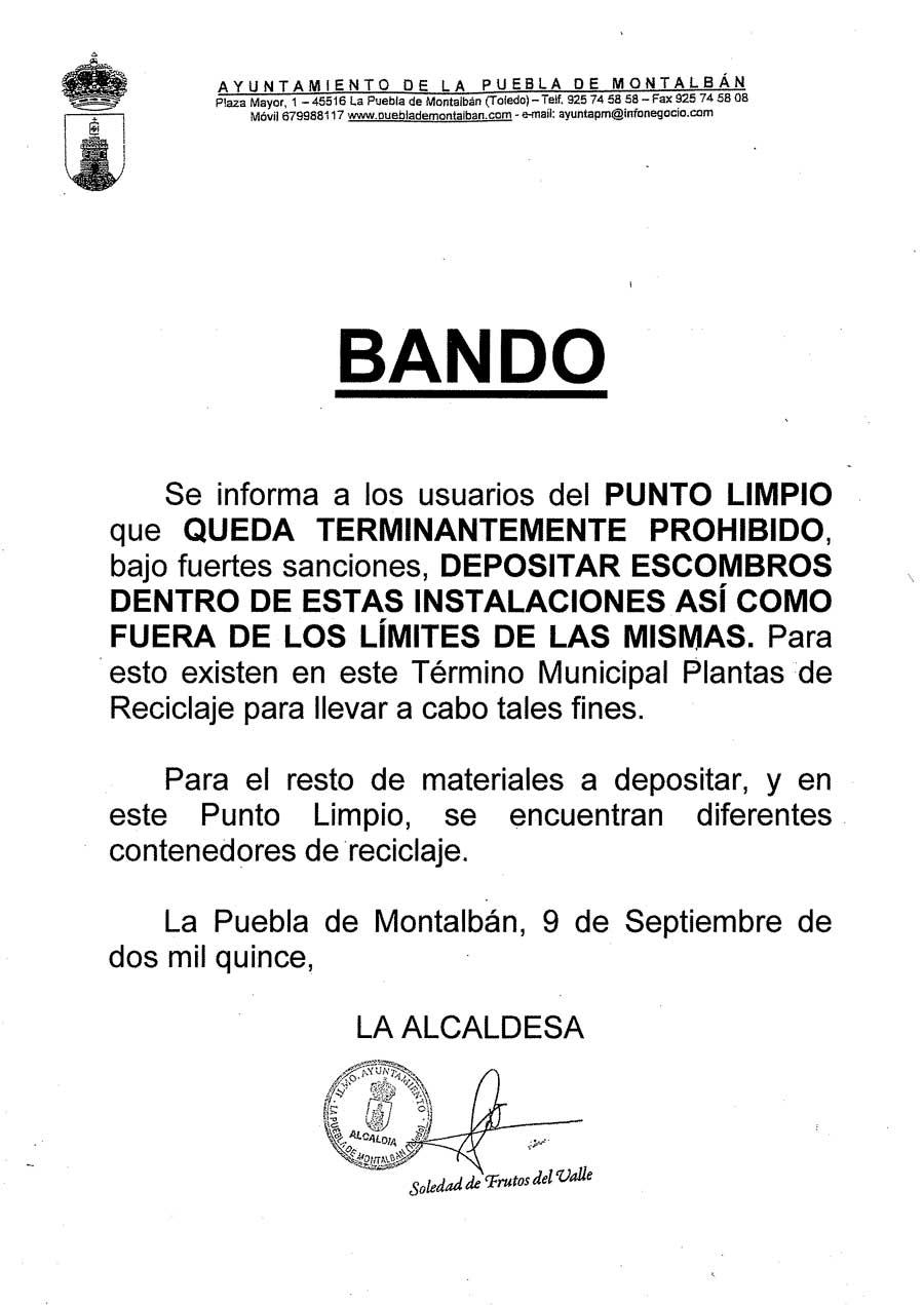 Sobre la prohibición de arrojar escombros dentro o en los alrededores del mismo Haz clic para compartir en Facebook (Se abre en una ventana nueva)Haz clic para compartir en Twitter (Se abre en una ventana nueva) Relacionado Navegación de entradas Bando sobre los daños ocasionados por tormenta Soledad de Frutos, nuestra alcaldesa, hoy en Radio Puebla