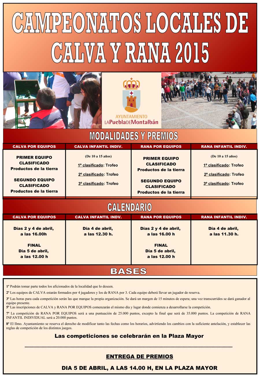 5ª Las inscripciones de CALVA y RANA POR EQUIPOS comenzarán el mismo día y lugar donde comienza a desarrollarse la competición.