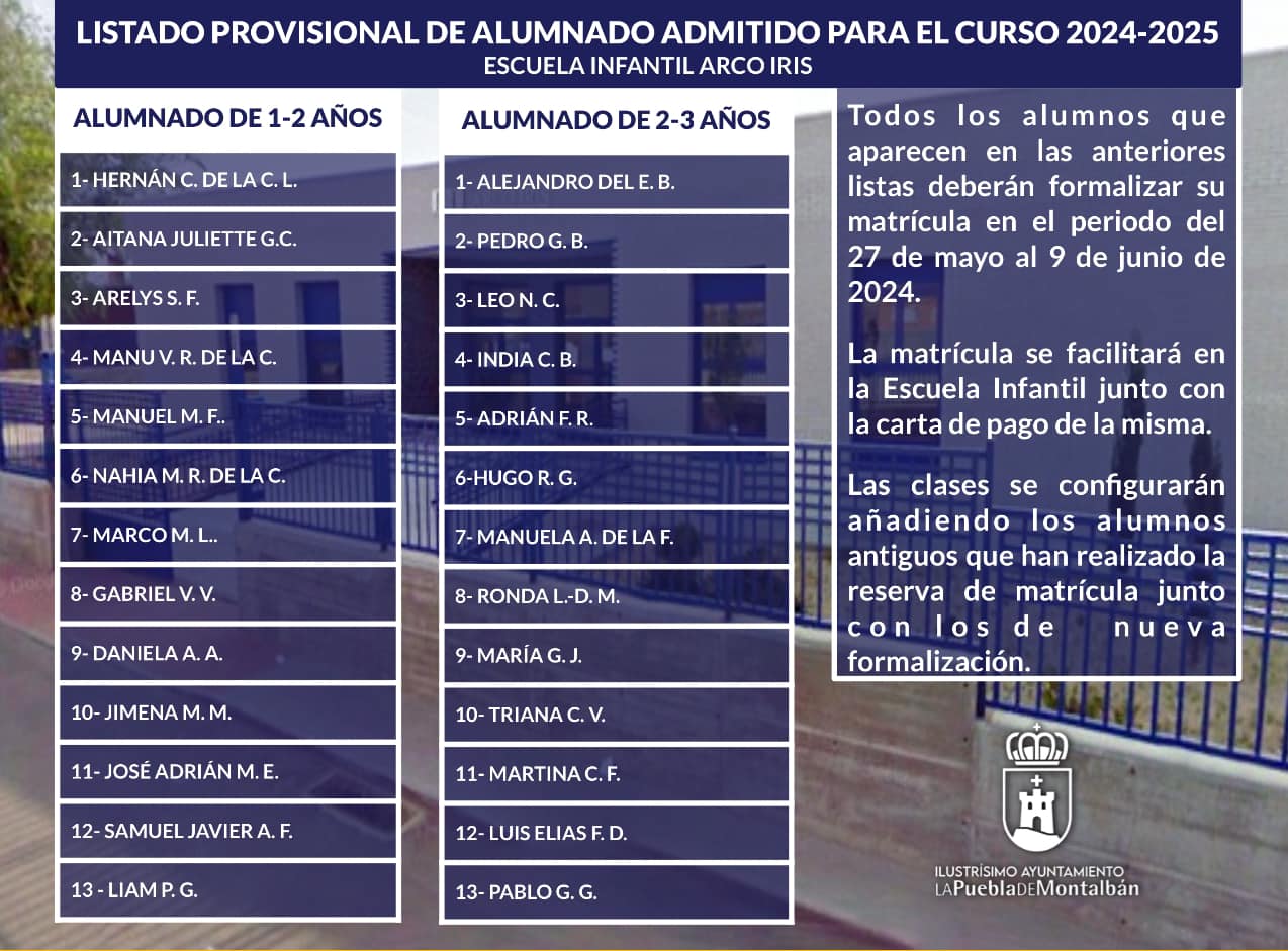 El Ayuntamiento de La Puebla de Montalbán publica la lista provisional de admitidos para la Escuela Infantil en el curso…