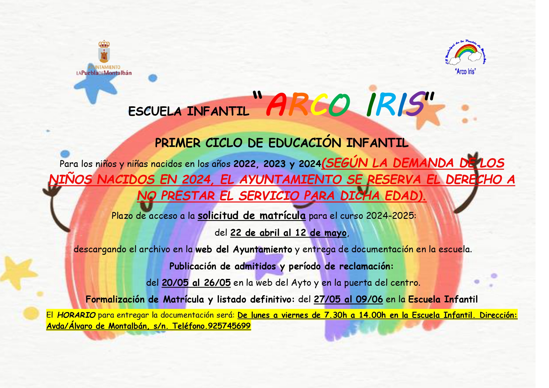 Educación | La Puebla ESCUELA INFANTIL “ARCO IRIS”PRIMER CICLO DE EDUCACIÓN INFANTIL 🏫 Para los niños y niñas nacidos en…