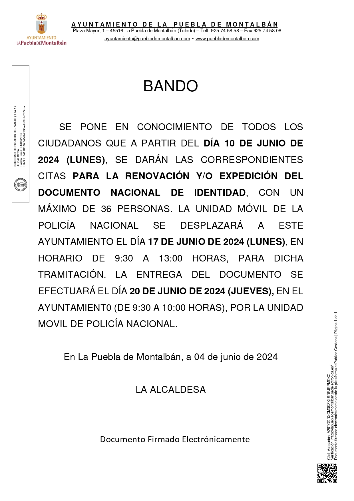 Se informa a la población que a partir del día 10 de junio de 2024 se darán las correspondientes citas…
