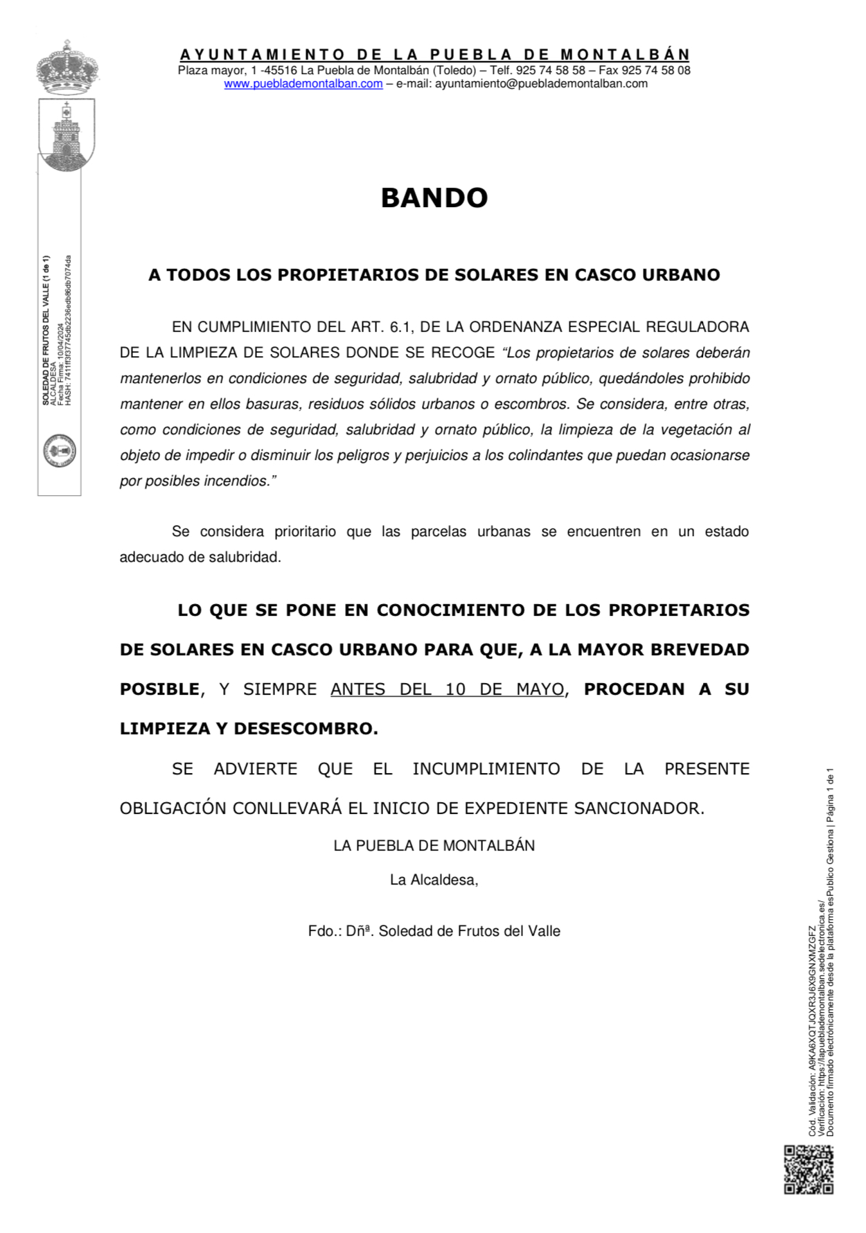 Nuevamente se pone en conocimiento de todos los propietarios de solares en el casco urbano de nuestro municipio, que en…
