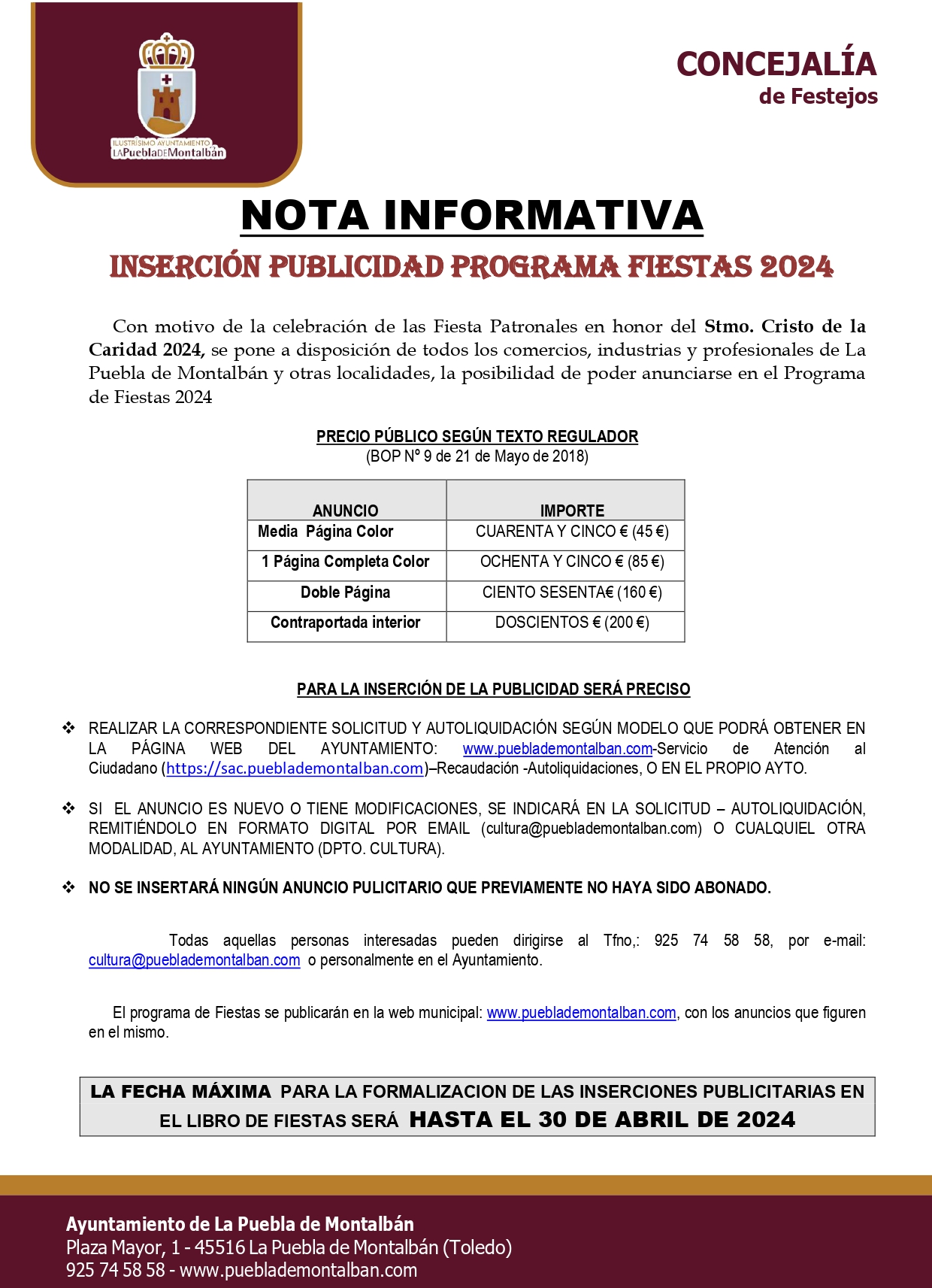 ¿Quieres anunciarte en el libro de fiestas 2024? Es el momento, ya que tienes hasta el 30 de abril para…