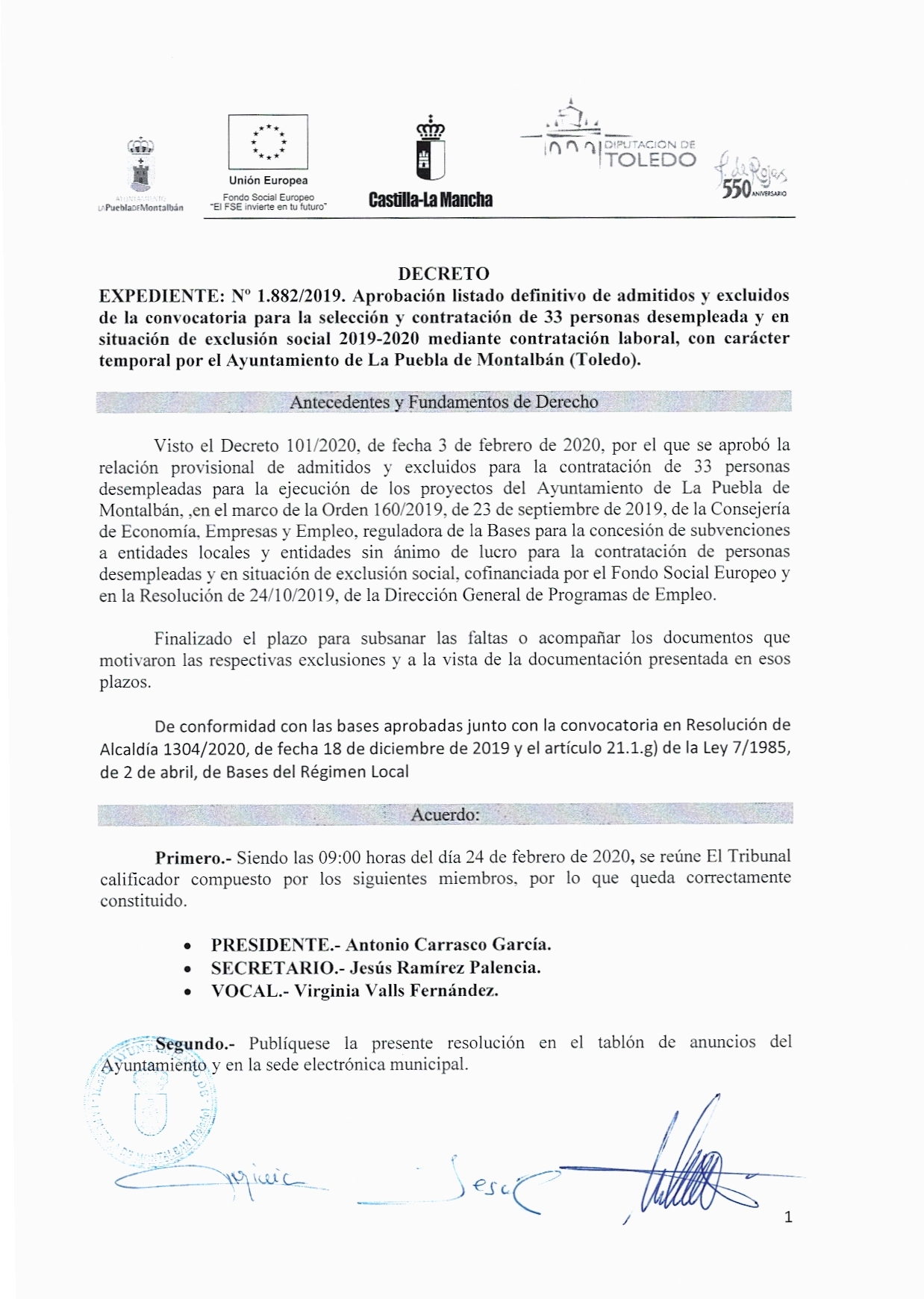 BASES REGULADORAS DE LA CONVOCATORIA PARA LA SELECCIÓN Y CONTRATACIÓN DE DOS PERSONAS DESEMPLEADAS EN EL MARCO DEL PACTO DE…