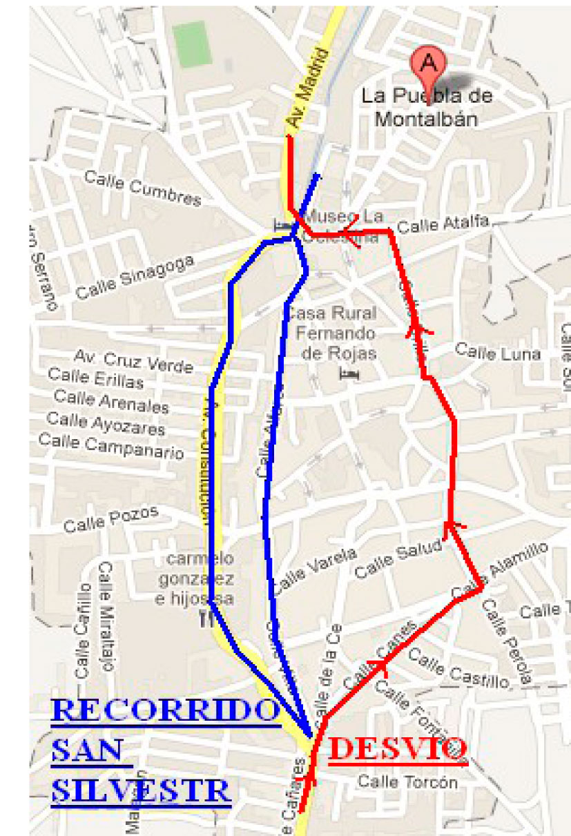 Mediante el presente comunicado la Policía Local de la Puebla de Montalbán , informa que el próximo día 21 de Diciembre de 2013, durante la celebración de la prueba San Silvestre, las siguientes vías detalladas más abajo sufrirán cortes del tráfico rodado, con el único fin de la realización de dicha carrera, el horario de dicha prueba será de 16:00h a 18:00h aproximadamente.