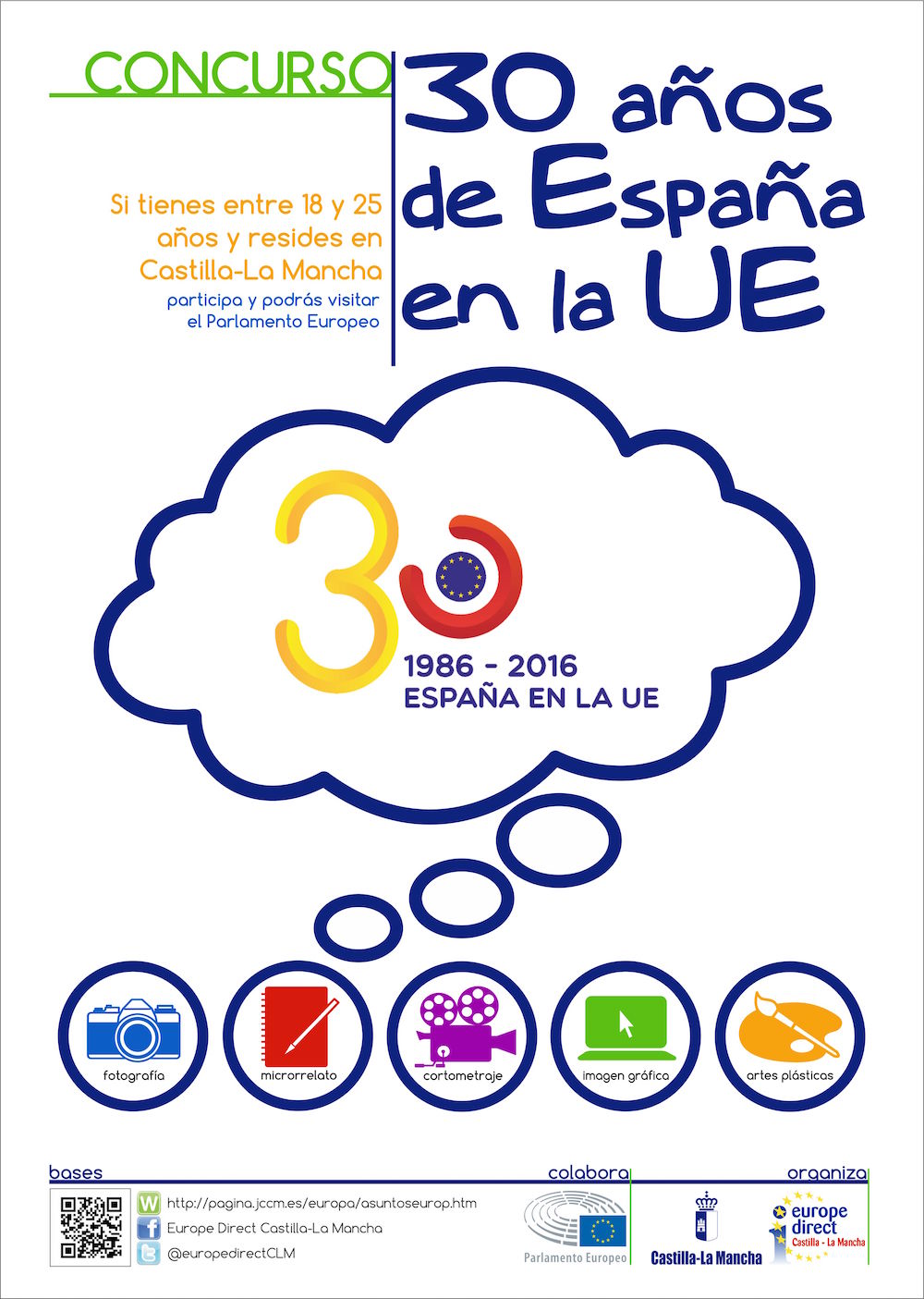 Con motivo de la conmemoración de los 30 años de España en la Unión Europea, se publicó el día 27 la resolución de la Dirección General de Relaciones Institucionales y Asuntos Europeos por la que se convoca un concurso artístico dirigido a jóvenes de entre 18 y 25 años que estén empadronados en Castilla-La Mancha.