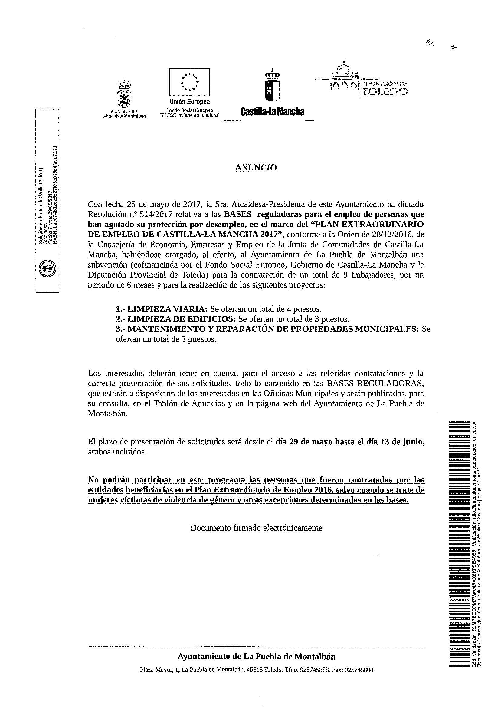 Desde los correspondientes enlaces se pueden descargar las bases y la solicitud: Bases Solicitud Haz clic para compartir en Facebook (Se abre en una ventana nueva)Haz clic para compartir en Twitter (Se abre en una ventana nueva) Relacionado Navegación de entradas Listado definitivo de admitidos y excluidos Plan Extraordinario de empleo Relación provisional de admitidos y excluidos del Plan Extraordinario de Empleo de Castilla-La Mancha