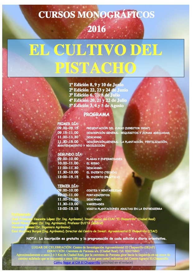 Programación de los cursos de verano sobre El Pistachero. Para la inscripción se tiene que rellenar la ficha de inscripción adjunta y devolverla a la dirección de este mismo correo (c-a-elchaparrillo@jccm.es) junto a una copia del DNI.
