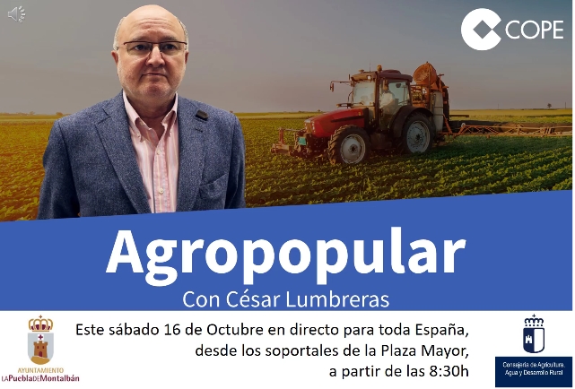 El programa «AGROPOPULAR» de la CADENA COPE, programa de información agraria histórico, que lleva emitiéndose desde 1984, dirigido por César Lumbreras, se emitirá esta sábado, para toda España, de 8:30h a 10:00h de la mañana, desde nuestra Plaza Mayor.