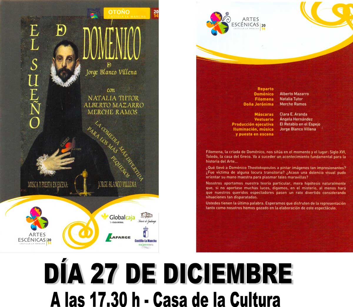 ¿saben por qué el Greco pintaba así…? El Sábado 27 de Diciembre, teatro infantil en la Casa de la Cultura,a las 17.30 Haz clic para compartir en Facebook (Se abre en una ventana nueva)Haz clic para compartir en Twitter (Se abre en una ventana nueva) Relacionado Navegación de entradas Espectáculo de copla y flamenco con Rocío Durán y Juan Pablo López Admisión del alumnado Colegio Fernando de Rojas