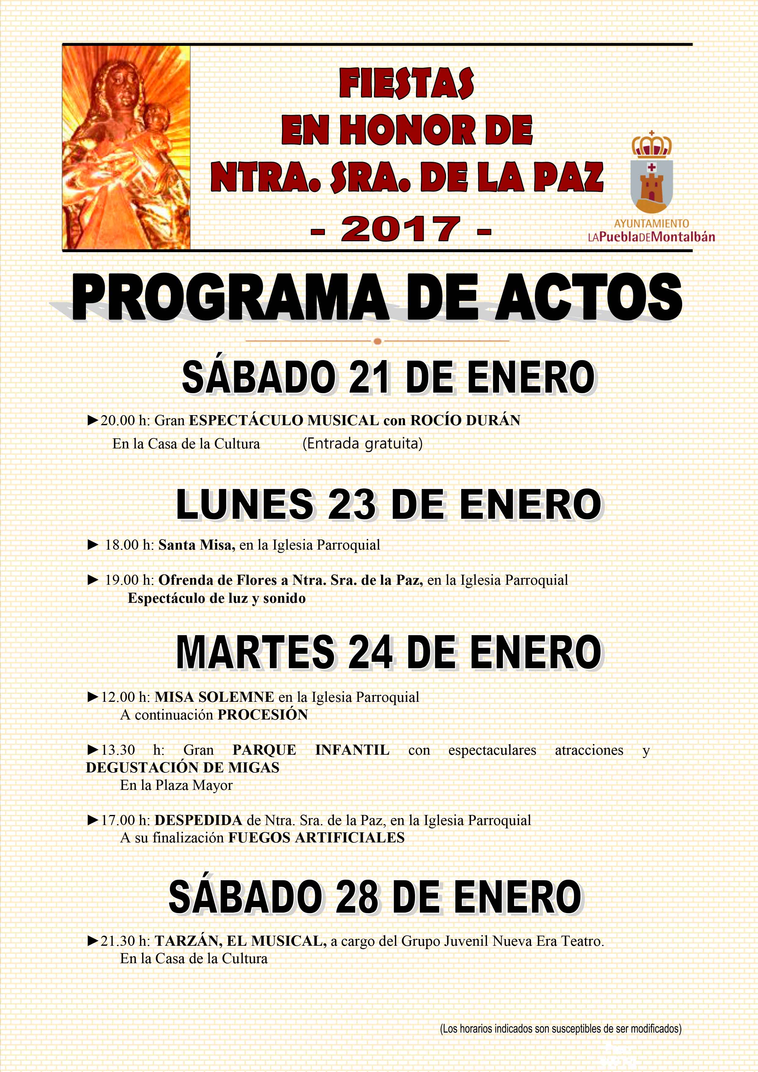 Haz clic para compartir en Facebook (Se abre en una ventana nueva)Haz clic para compartir en Twitter (Se abre en una ventana nueva) Relacionado Navegación de entradas Fiestas en honor de nuestra Patrona, la Virgen de La Paz, 2016 Programa de actos – Fiestas de la Virgen de La Paz 2018