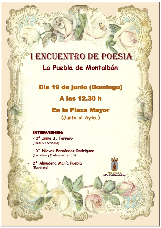 El domingo 19 de junio tendrá lugar el 1er Encuentro de Poesía en la Plaza Mayor (junto al Ayuntamiento) Haz clic para compartir en Facebook (Se abre en una ventana nueva)Haz clic para compartir en Twitter (Se abre en una ventana nueva) Relacionado Navegación de entradas Cursos de verano 2016 – Centro Cívico Primer encuentro de poesía de La Puebla de Montalbán