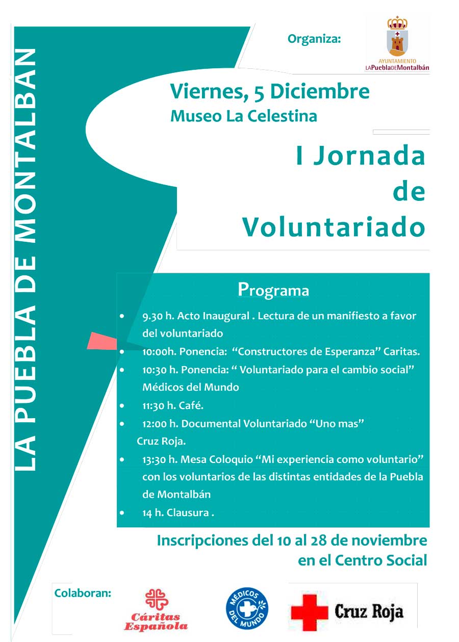 - · 13:30 h. Mesa Coloquio “Mi experiencia como voluntario” – con los voluntarios de las distintas entidades de la Puebla de Montalbán