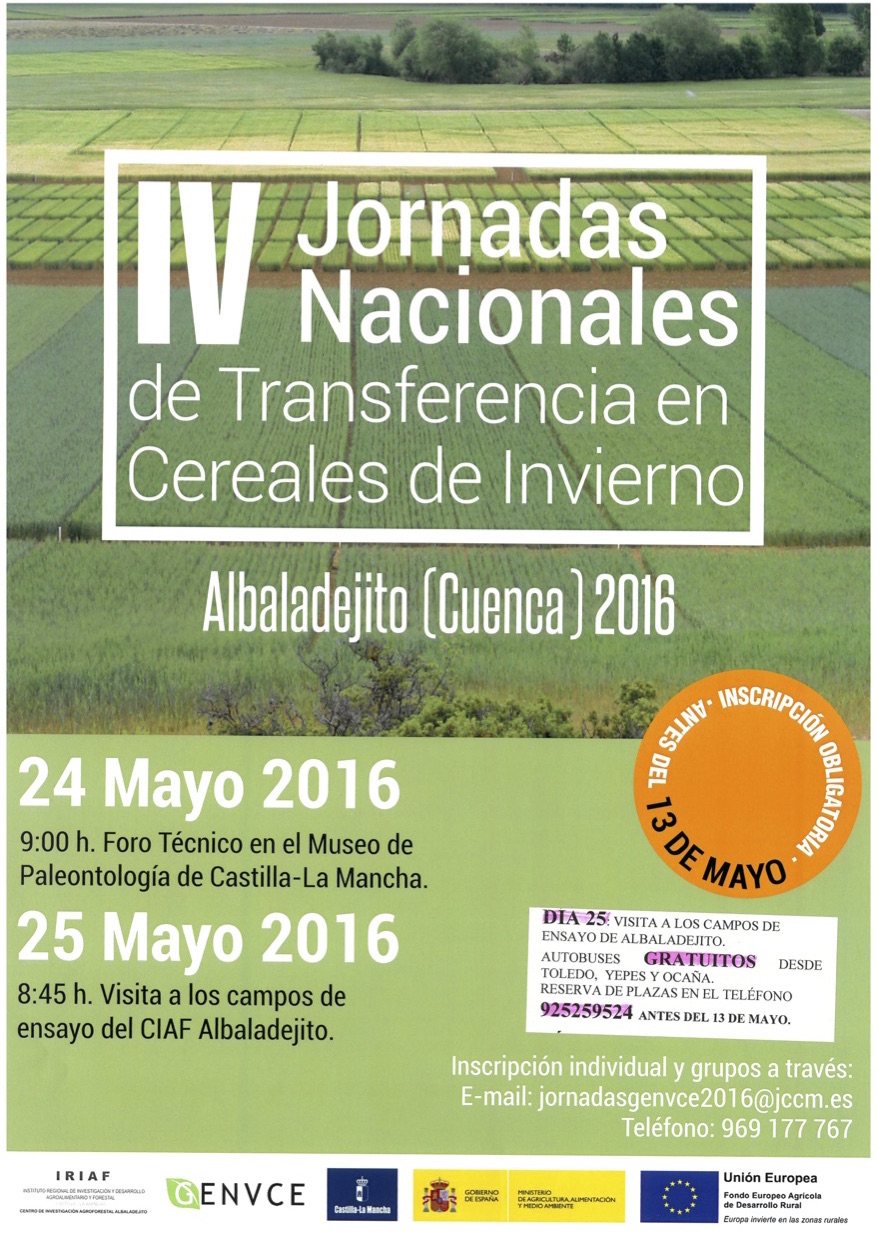 Información sobre las IV Jornadas Nacionales de Transferencia en Cereales de Invierno que se van a celebrar los días 24 y 25 de Mayo en Centro de Investigación Agroforestal de Albaladejito (Cuenca) y tienen por objeto el intercambio de conocimientos, experiencias y novedades en el ámbito de los cereales de invierno.