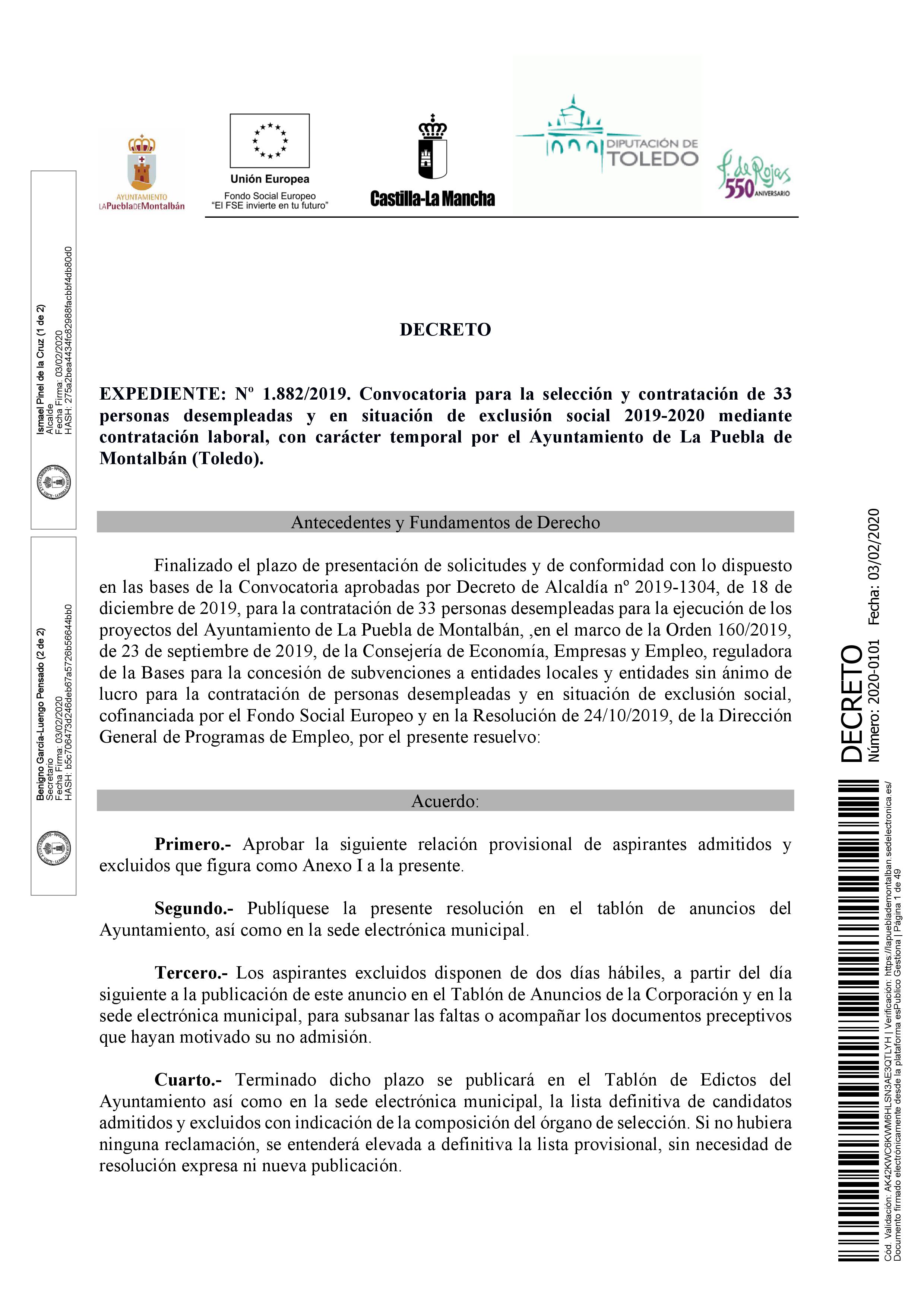 LISTADO Haz clic para compartir en Facebook (Se abre en una ventana nueva)Haz clic para compartir en Twitter (Se abre en una ventana nueva) Relacionado Navegación de entradas CAMPAÑA RENOVACIÓN DNI Aprobación listado definitivo de admitidos y excluidos del Plan de Empleo. Informador turístico del Museo de la Celestina