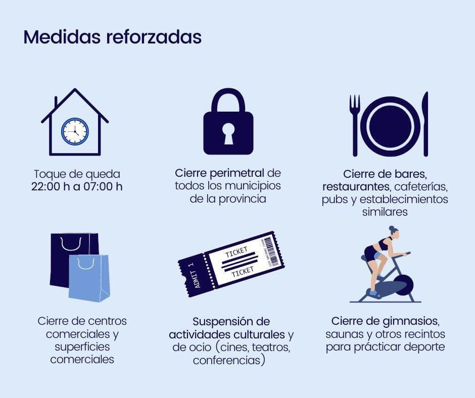 CONFINAMIENTO PERIMETRAL de todos y cada uno de los municipios de la provincia.LOCALES DE OCIO: