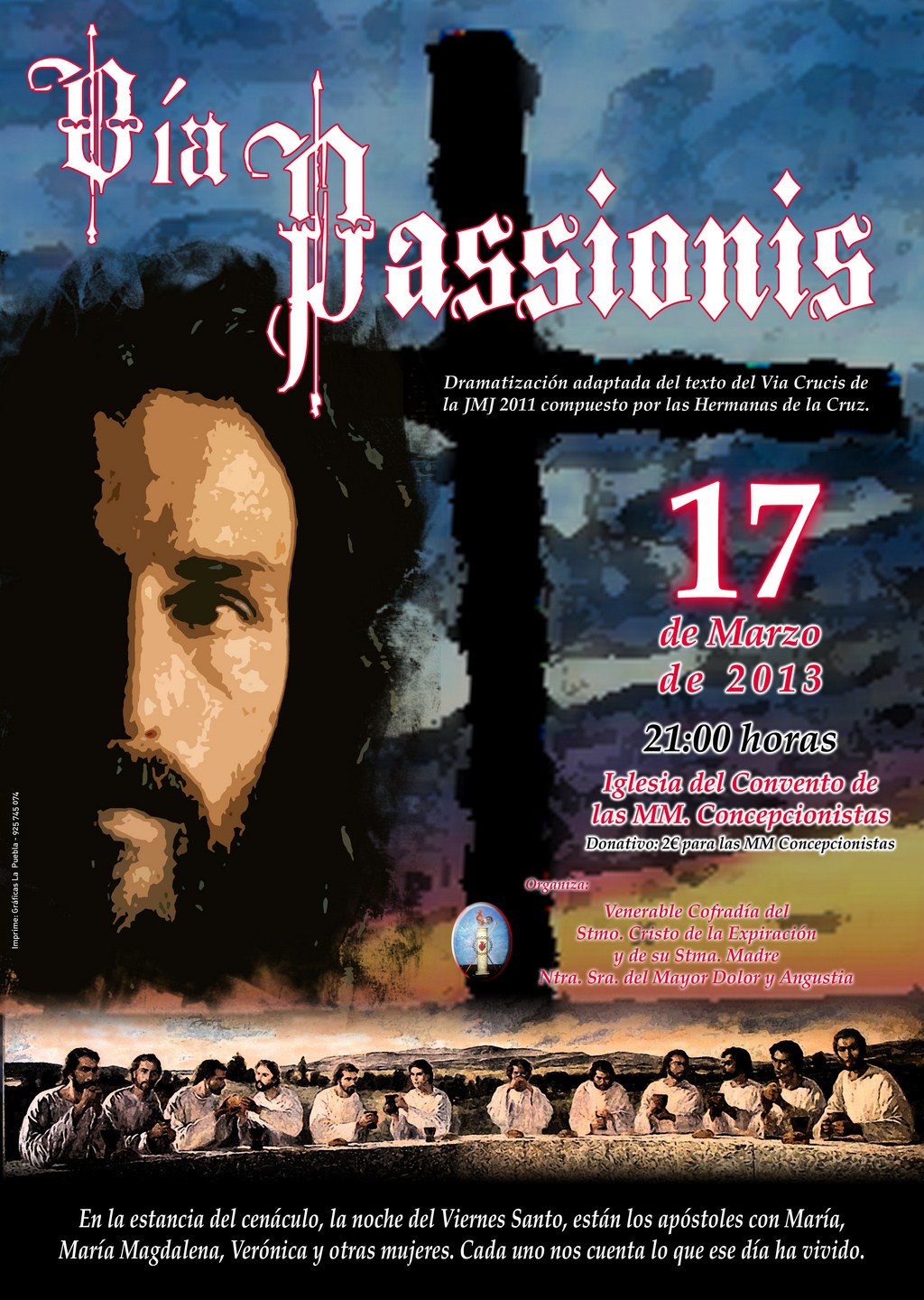 El 17 de Marzo de 2013 (Domingo) en la iglesia del Convento de las Madres Concepcionistas podremos asistir a una dramatización adaptada del texto del Via Crucis.